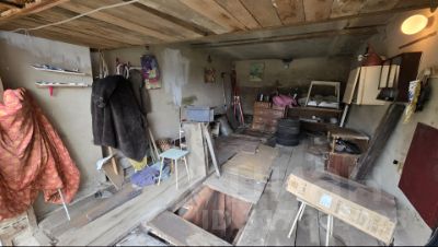 Большой 2х.эт.гараж большой подвал и погреб.на 2эт.есть сваренный стелаж и утепленная комната с печкой и окном.весь гараж из бетона от подвала до верха.крыша залита бетоном . Есть отсыпанное щебенкой место для парковки. И отдыха.гараж находится в небольшом закутке где нет проходимости.