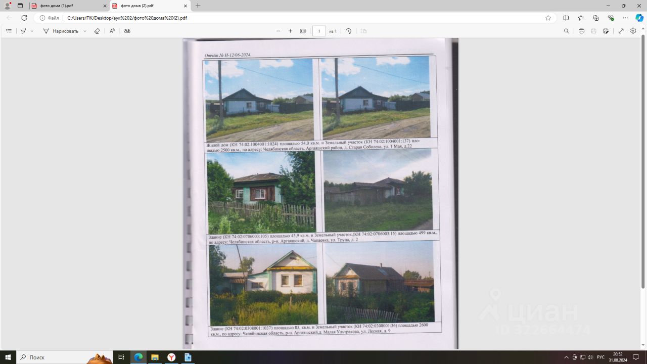 Жилой дом, признанный непригодным для проживания, общей площадью 45,9 кв.м., кадастровый номер: 74:02:0706003:105 и земельный участок под ним, общей площадью 499,0 кв.м., кадастровый номер: 74:02:0706003:15, расположенные по адресу: Челябинская область, Аргаяшский район, д.Чапаевка, ул.Труда, д.2.