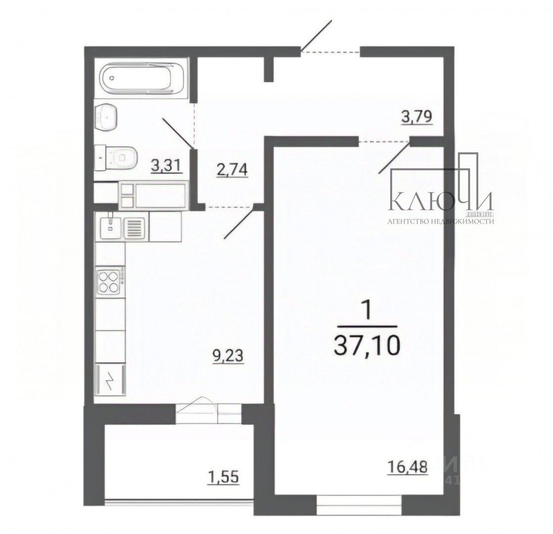 Планировка: Площадь 37,1 кв.м. просторная комната, кухня от 9 кв.