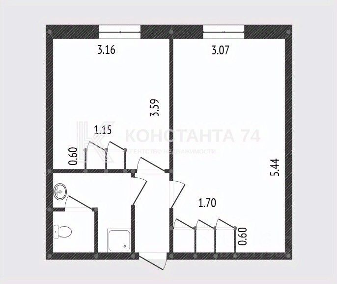 Квартира располагается на 3 этаже. Удобная планировка, кухня-гостиная, +спальня.
